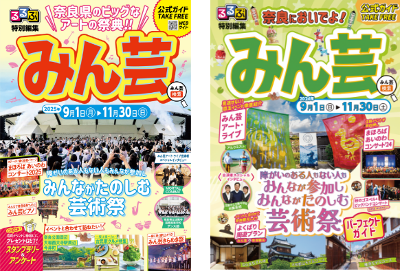 愛称は「みん芸」。毎年9月1日から11月30日に開催される、障がいのあるなしや性別・年齢にかかわらず「みんな」が参加して「たのしむ」ことのできる芸術祭です。芸術文化活動をしている個人・団体と一緒につくりあげるのが特徴の『参加型』のアートフェスティバルで、2021年から「奈良県大芸術祭」「奈良県障害者大芸術祭」を一本化して開催しています。