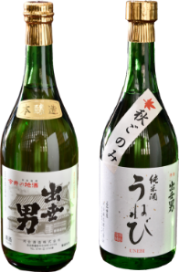 豪壮な建物は国の重要文化財。河合家は250年以上前から酒造業を営んでおり、代表銘柄「出世男」は縁起のいい名でも喜ばれている。