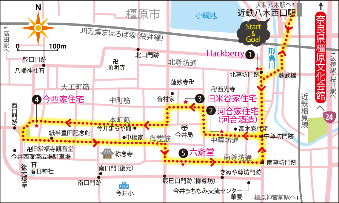 今井町で最古、全国的にも極めて古い民家。今西家は町の自治を司った名家で、広い土間はお白洲(裁きの場)としても使われた。見学は要予約。