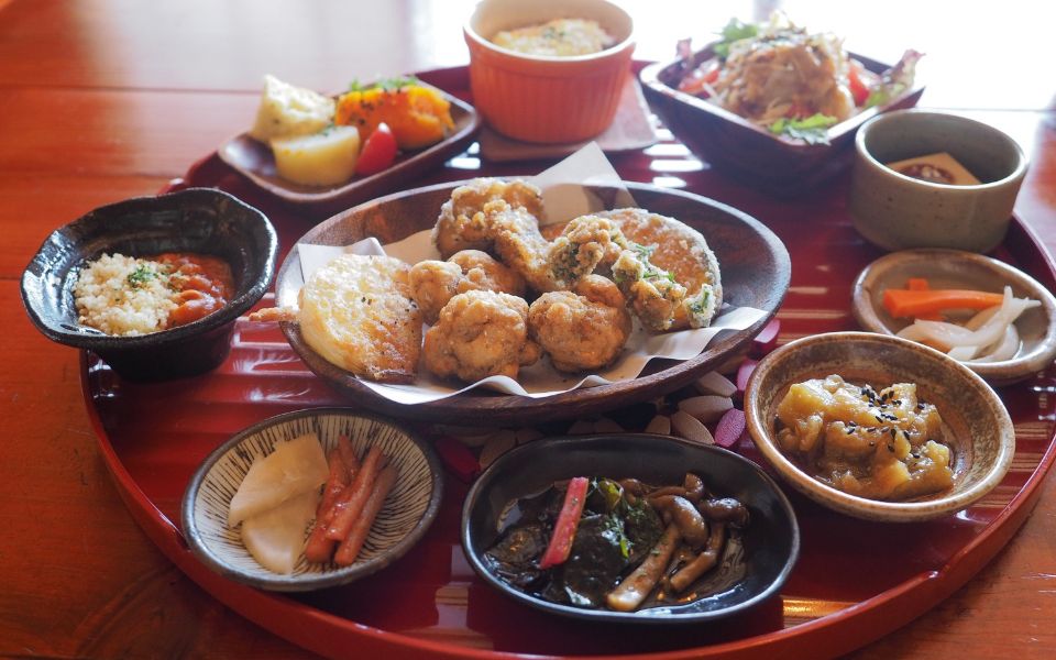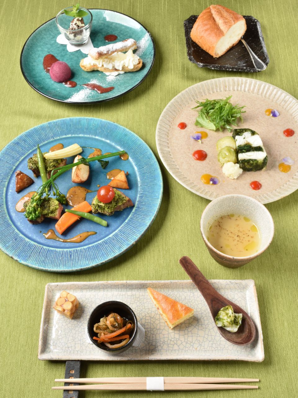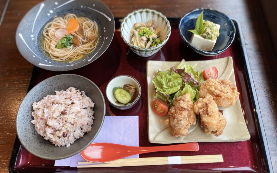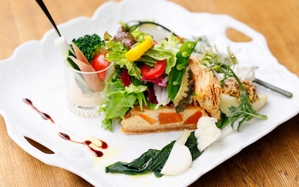 「信楽焼の器とお箸で楽しむ」というコンセプトのとおり、どの料理もひと口サイズで食べやすく優しい味わい。盛付けもカラフルで華やか!